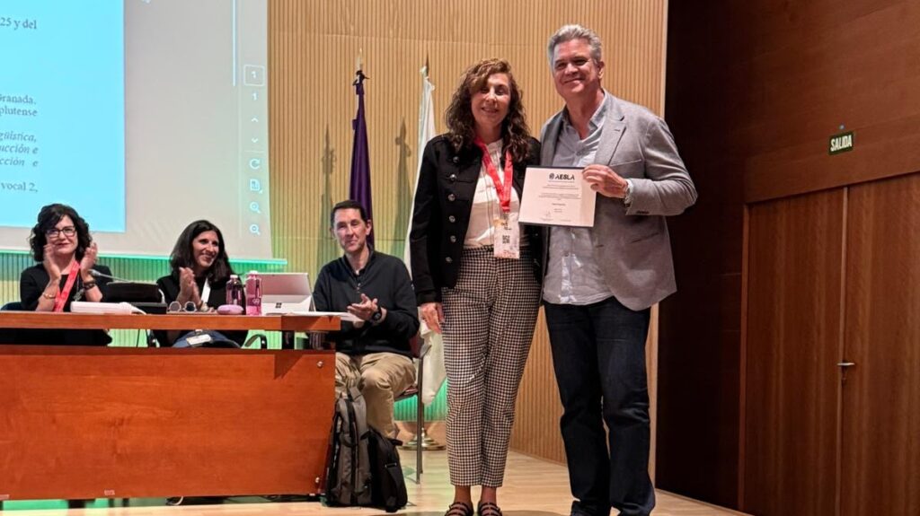 La Junta Directiva de AESLA, tras evaluar de forma anónima los trabajos presentados, acordó otorgar este reconocimiento a una obra que constituye una aportación destacada al estudio del lenguaje en entornos digitales. El premio fue entregado el pasado jueves 16 de abril de 2026, en el marco de la Asamblea anual de socios/as de AESLA, coincidiendo con la celebración del XLIII Congreso de AESLA en la Universidad de Granada.