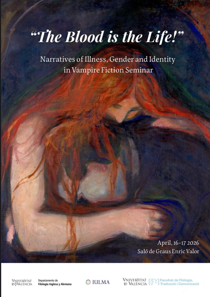 El Instituto Interuniversitario de Lenguas Modernas Aplicadas (IULMA) tiene el placer de invitar a la comunidad académica y al público interesado al seminario interdisciplinar “The Blood is the Life!”: Narratives of Illness, Gender and Identity in Vampire Fiction.